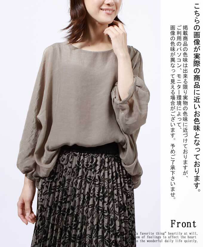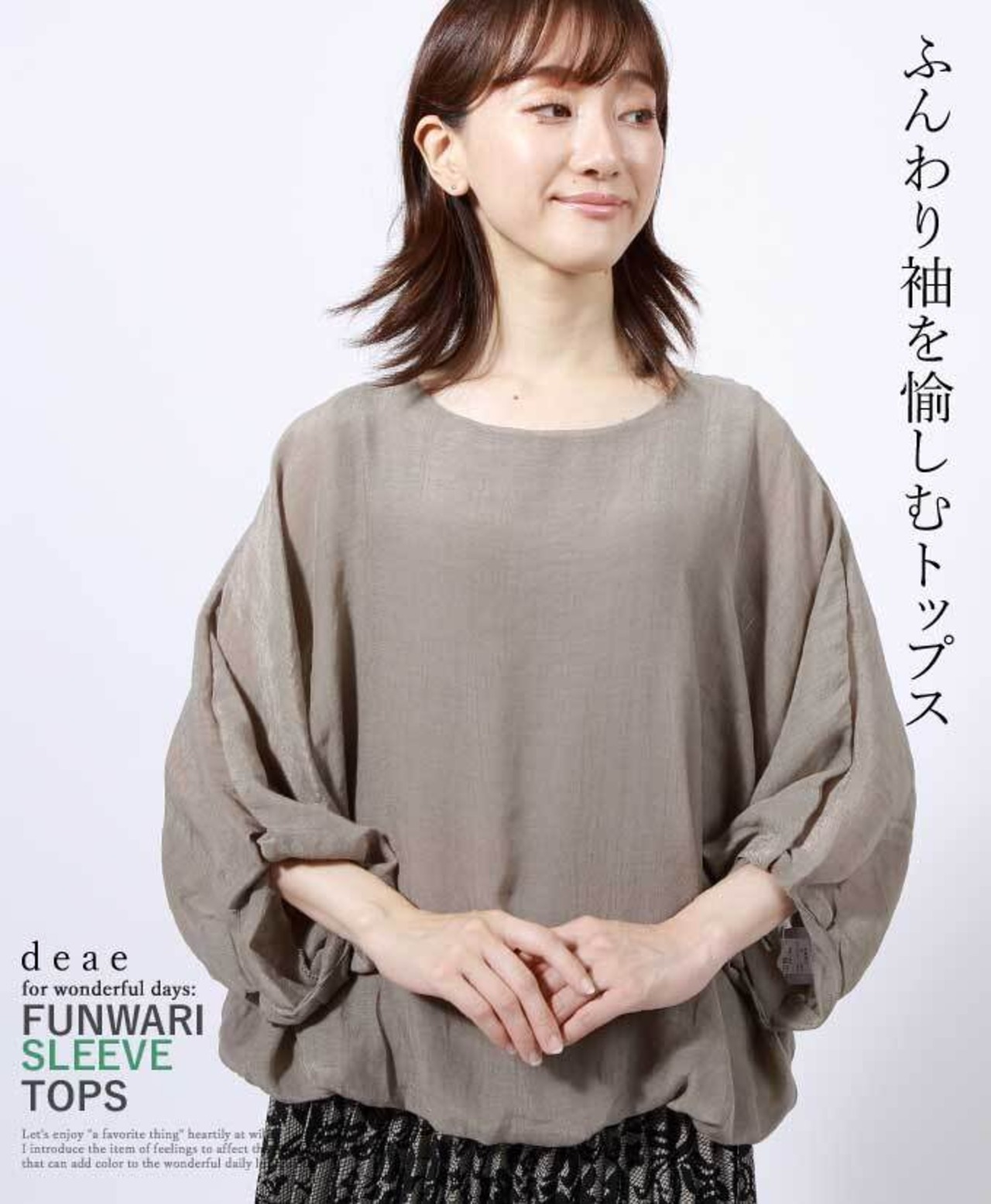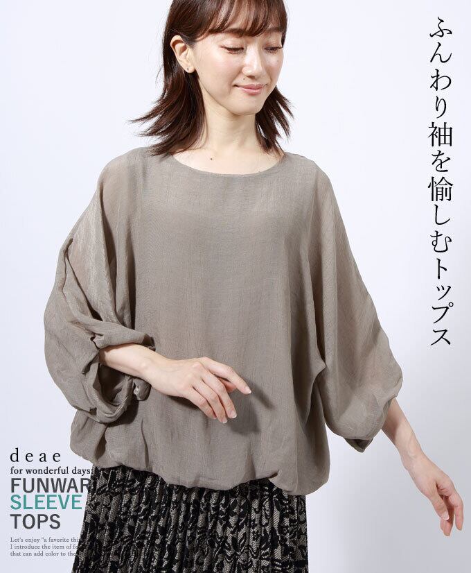 【カーキベージュ】ふんわり袖を愉しむトップス【da10103】プルオーバー 袖 ボリューム 40代 50代 60代 トップス シャツ ブラウス レディース カーキベージュ 春夏 7分袖 袖コンシャス バルーン バルーンシルエット カットソー 長袖 レディース きれいめ シアー ふんわり袖 ぽわん袖 ボリューム袖 | deae