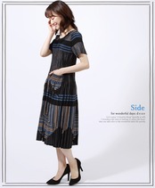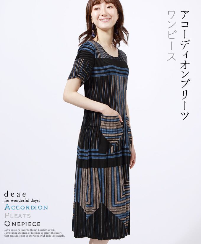 【ブルーミックス】アコーディオンプリーツ ワンピース チュニック【db10101】レディース 上品 きれいめ カジュアル 半袖 ひざ下丈 プリーツ フレア
