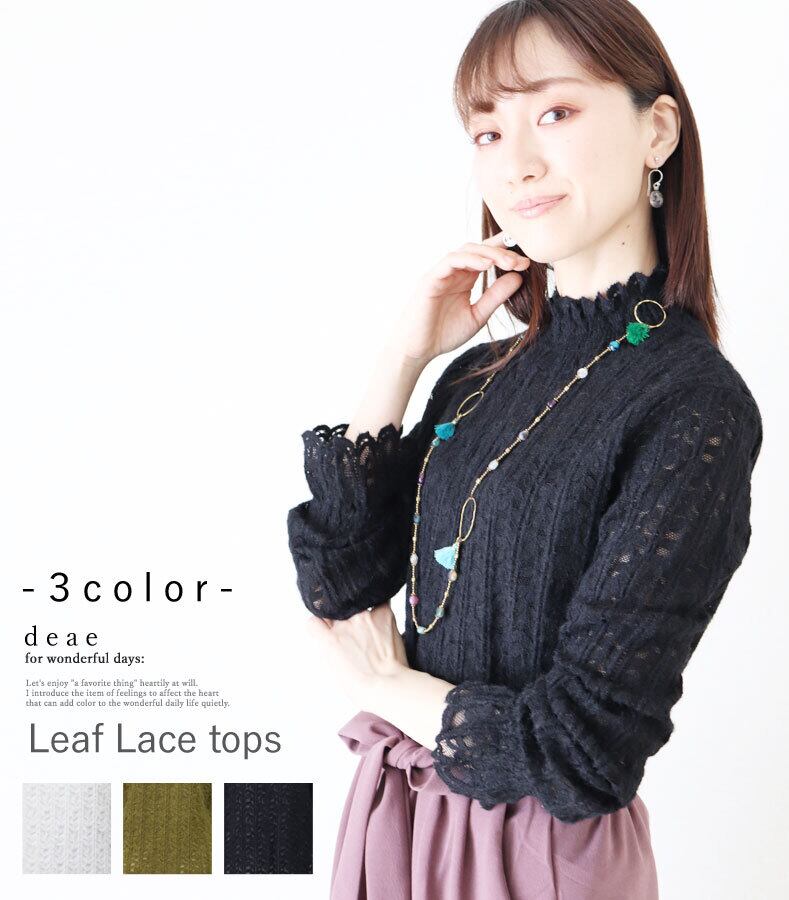トップス ふんわり袖 レース オフネック フェミニン ヴィンテージ風 レディース オールシーズン ファッション カジュアル お洒落 可愛い 着回し オシャレ 「リーフ柄繊細レーストップス」【ホワイト ブラック オリーブ】「リネン100% 斜めラインで 涼やかシルエット」【da10120a】 | deae