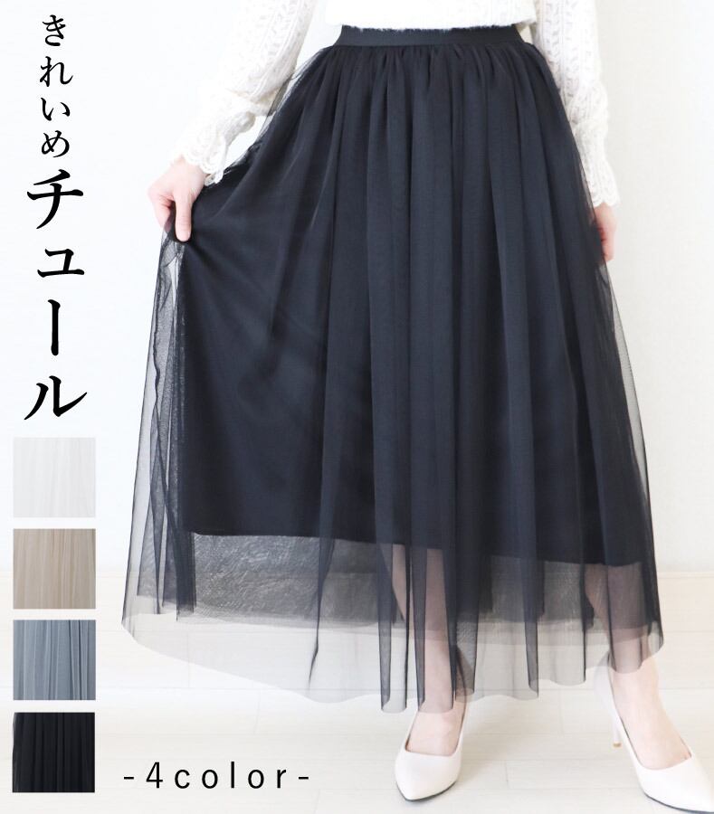 「大人が嗜む きれいめチュールスカート」スカート チュール ロング丈 たっぷりフレア レディース ファッション【 ブラック ホワイト グレー ベージュ】 大人 カジュアル お洒落 可愛い 着回し ナチュラル 華やか レイヤード 【dc10110a】 | deae