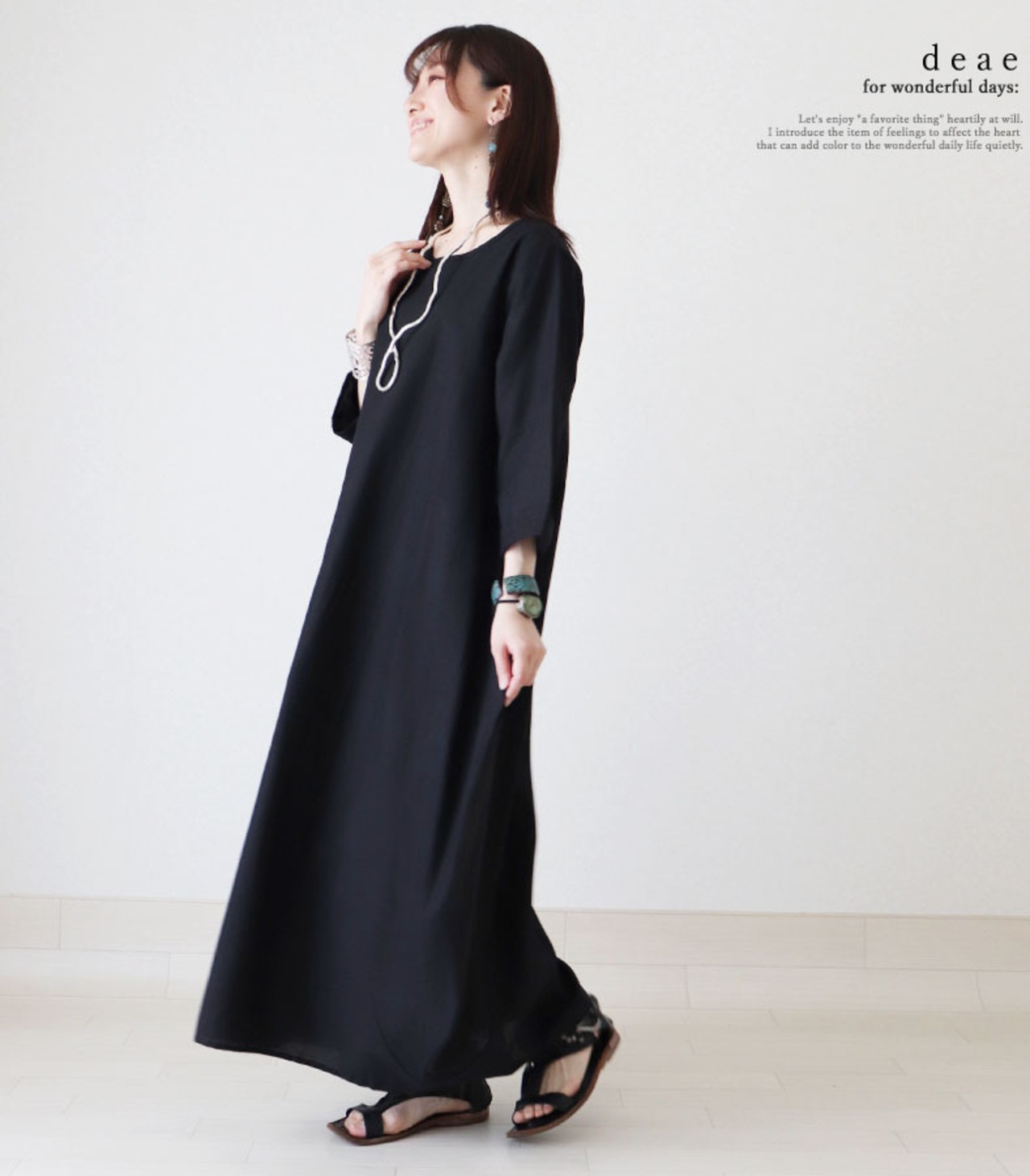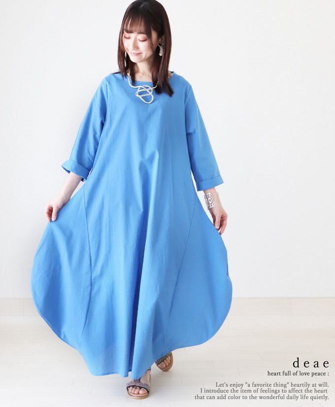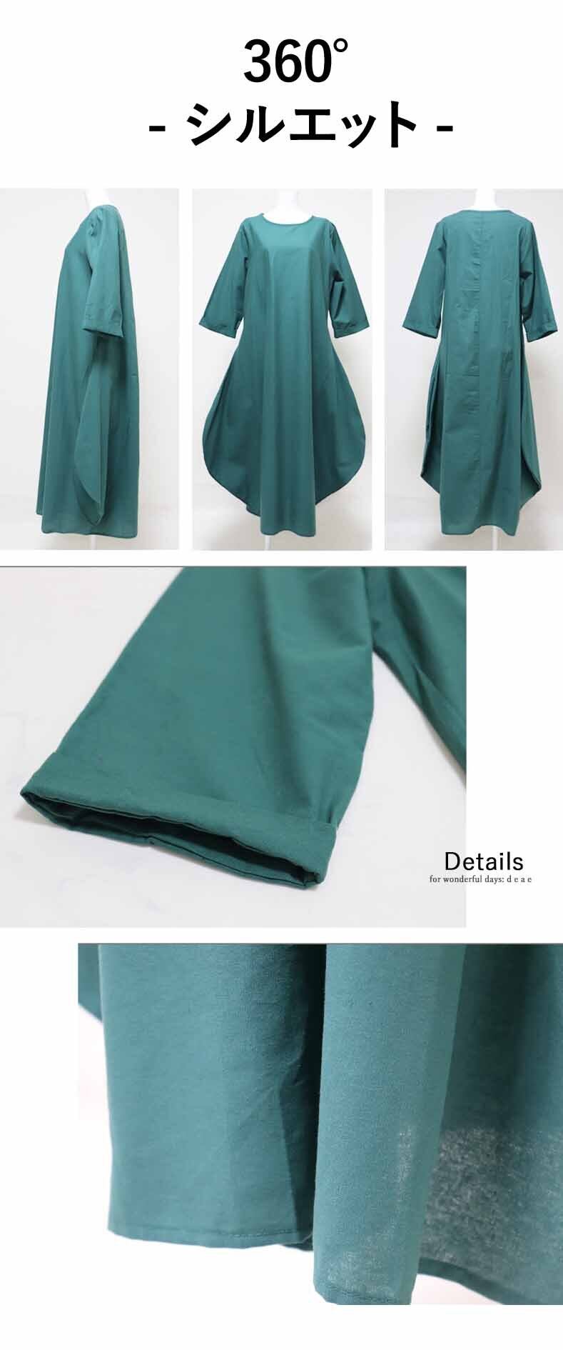 ワンピース ロング丈 マキシ丈 5分袖 七分袖 コクーンシルエット レディース ファッション 【グリーン・ ブラック・ ライトブルー・ ホワイト・ レッド 】大人 カジュアル お洒落 可愛い 着回し ナチュラル 華やか オシャレ 「ふんわりコクーンシルエットのロング丈ワンピース」【db10106】 | deae