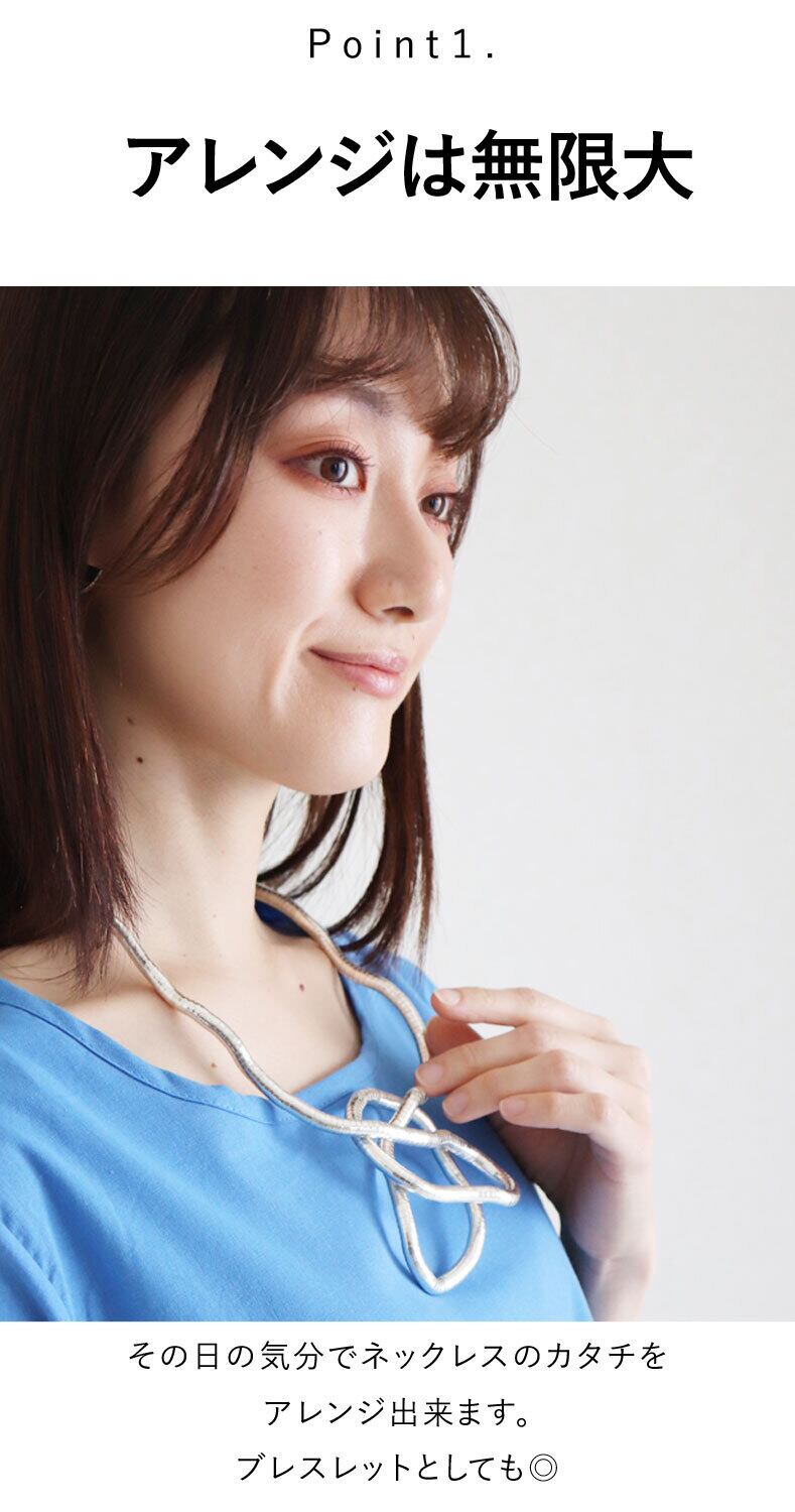 ネックレス ブレスレット アレンジ無限大 モード カッコいい アクセサリー アクセント レディース ファッション シルバー 大人 カジュアル お洒落 可愛い 上品 華やか オシャレ 「アレンジ100通り以上! ブレスレットにもなる くねくね曲がるネックレス」【dz10100】 | deae