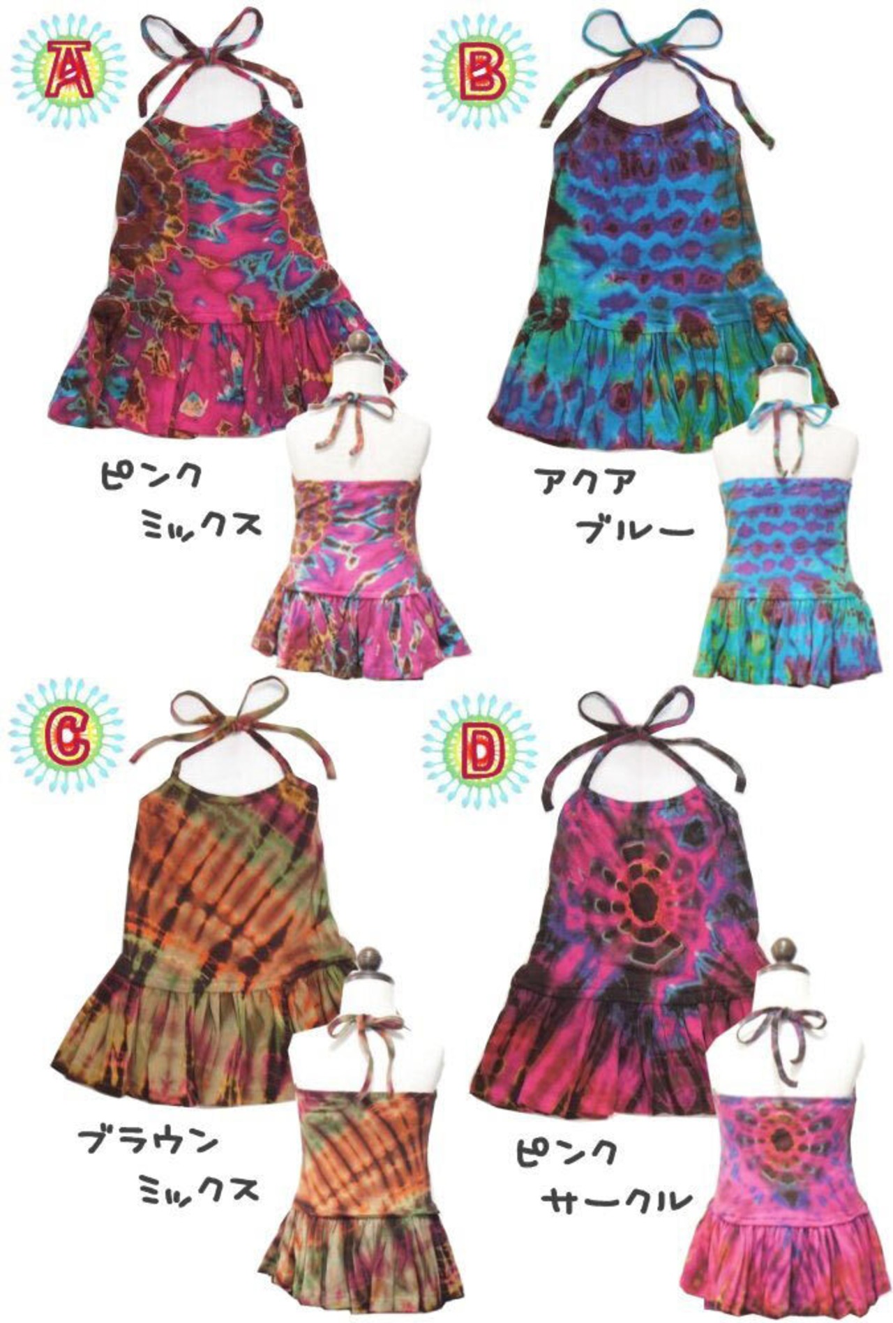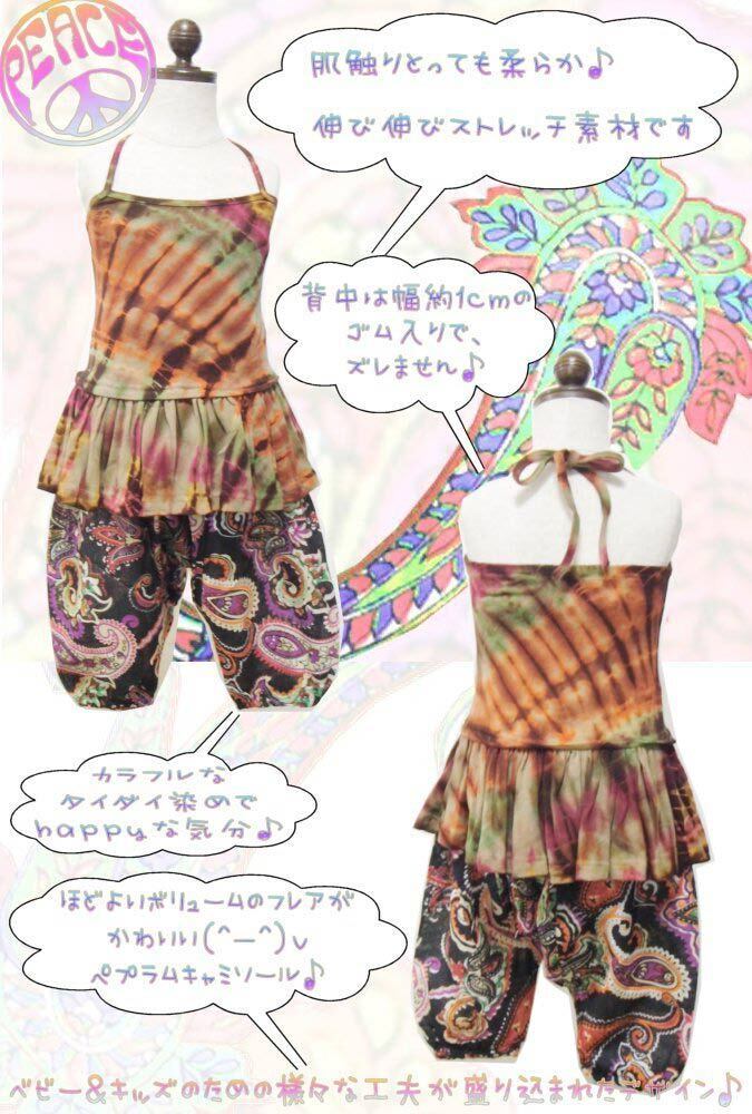 【半額セール 定価1980円税込】ベビー キッズ ファッション トップス キャミソール ぺプラム 春 夏 秋 冬 オールシーズン 子供服 女の子 男の子 ユニセックス ノースリーブ ロング丈 エスニック カジュアル ストレッチ フレア タイダイ染め 綿・コットン【 90 100 110 120 】【sp133】 | deae
