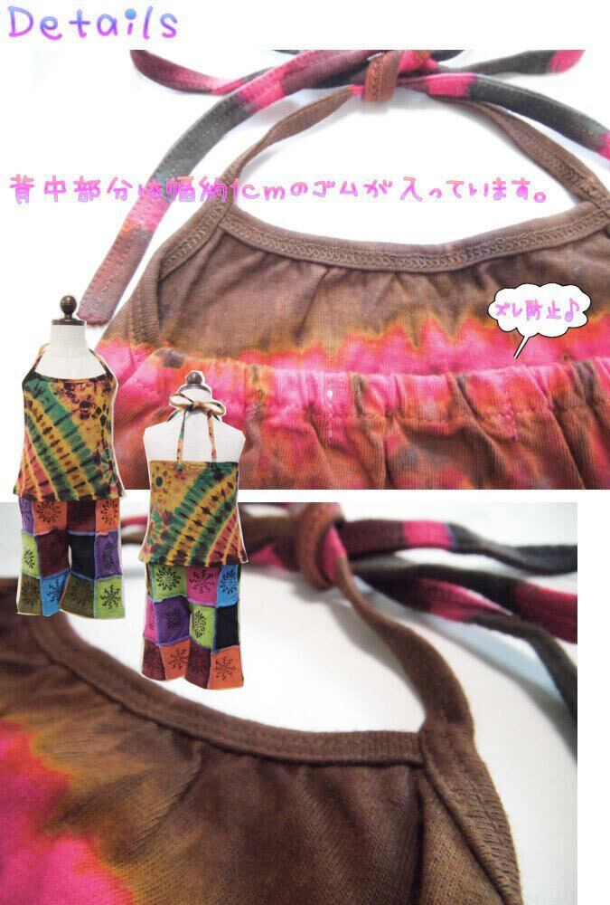 【半額セール 定価1980円税込】ベビー キッズ ファッション トップス キャミソール 春 夏 秋 冬 オールシーズン 女の子 男の子 ユニセックス ノースリーブ ロング丈 エスニック カジュアル アジアン ストレッチ ホルターネック タイダイ染め 綿・コットン 【 80 90 100 110 】【sp144】 | deae