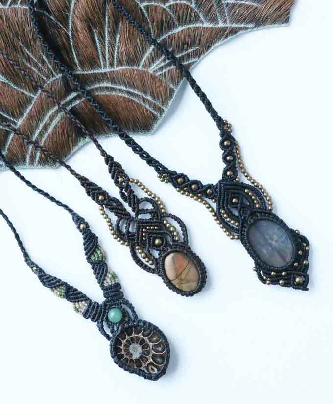ネックレス マクラメ編み ハンドメイド レディース ファッション ビーズ アンティークモチーフ 春 夏 秋 冬 オールシーズン 大人 カジュアル お洒落 可愛い オシャレ 「印象的なアンティークモチーフのマクラメ編みネックレス」【pb302】