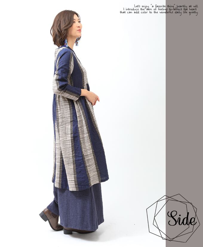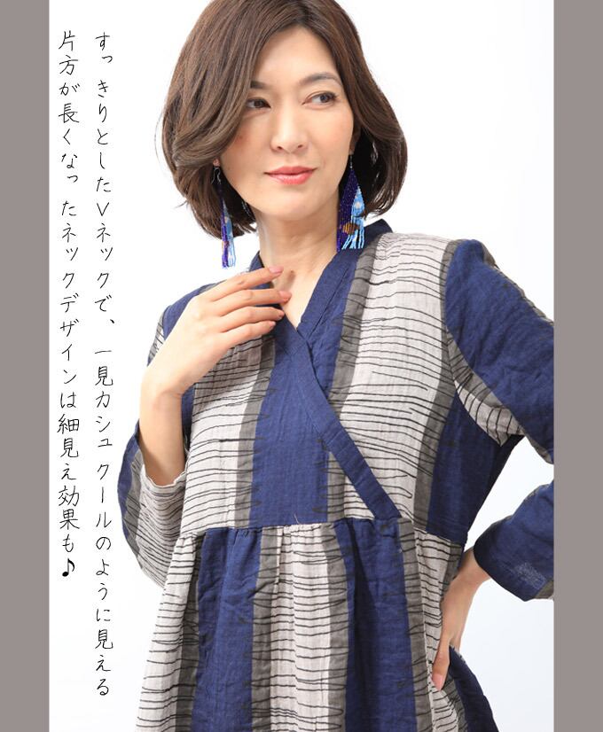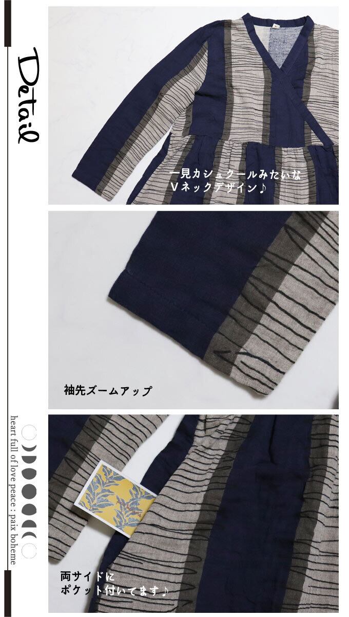 【ネイビー】DEAE 手描きストライプのカシュクール風ナチュラルワンピース ワンピース/ストライプ/ナチュラル/【pb541】