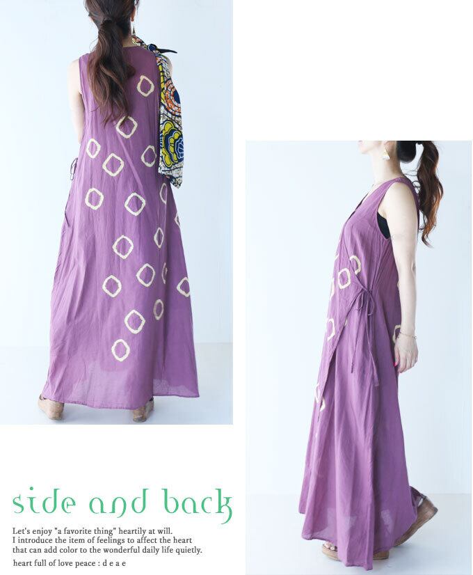 ワンピース ノースリーブ ロング丈 オリエンタル タイダイ染め レディース 夏 春 ファッション エスニック アジアン カジュアル お洒落 可愛い「涼やかな絞り染め カシュクール風ロング丈 ワンピース」 【db10114】 | deae