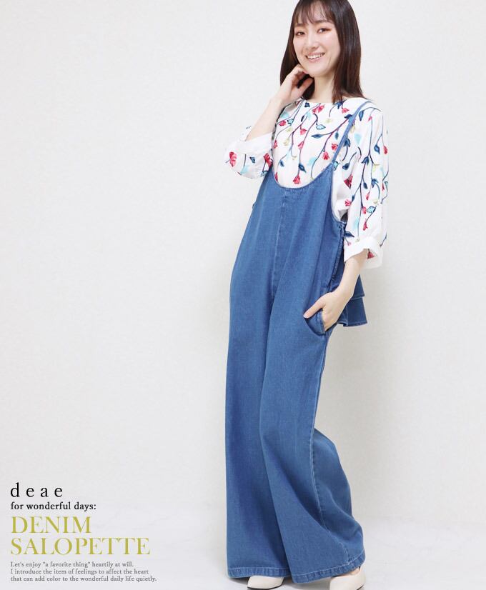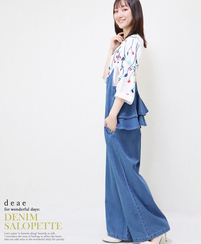 サロペット オールインワン デニム バックフリル レディース ファッション ブルー 大人 ナチュラル カジュアル お洒落 可愛い 「バックフリルが大人可愛い 細見せデニムサロペット」 【db10107】