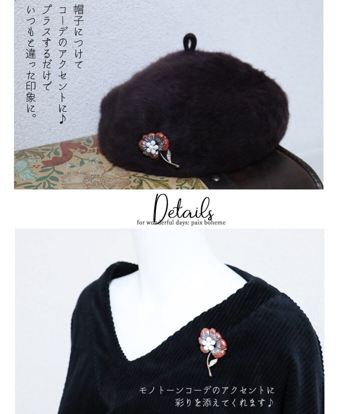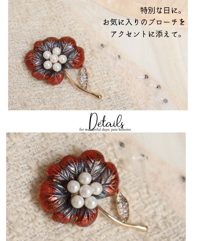 D.E.A.E レトロ花ブローチ/差し色/北欧/煌めくブローチ/かわいいブローチ/金/ゴールド/レトロ/植物/アクセント/ビジュー/花/上品/パール/野花/ヴィンテージ調/【pb713】 | deae