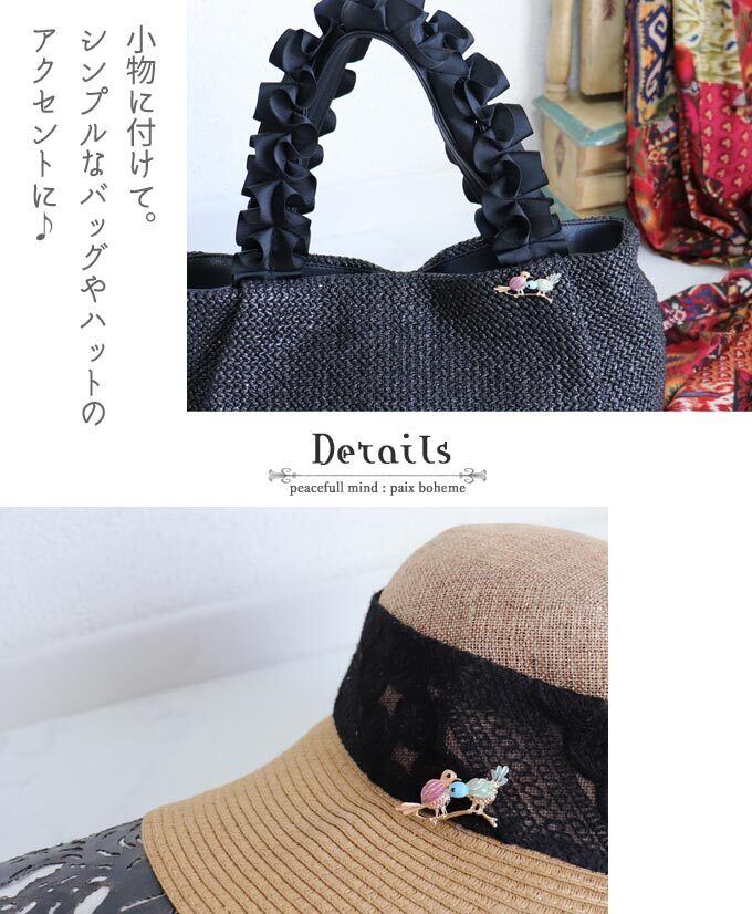 【検索ワード】DEAE り パステルな2羽の小鳥ブローチ/差し色/北欧/煌めくブローチ/かわいいブローチ/金/ゴールド/インコ/レトロ/アクセント/ビジュー/