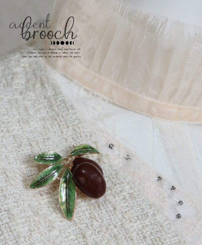 【検索ワード】 オリーブの実ブローチ/差し色/北欧/煌めくブローチ/かわいいブローチ/金/ゴールド/木の実/アクセント/ビジュー/自然モチーフブローチ/植物/お洒落/カジュアル