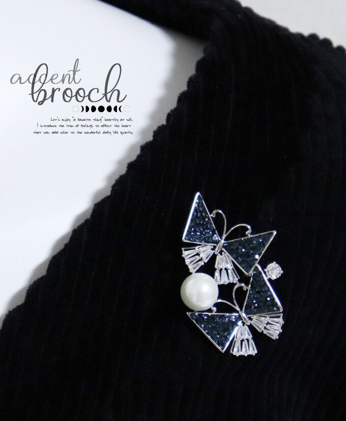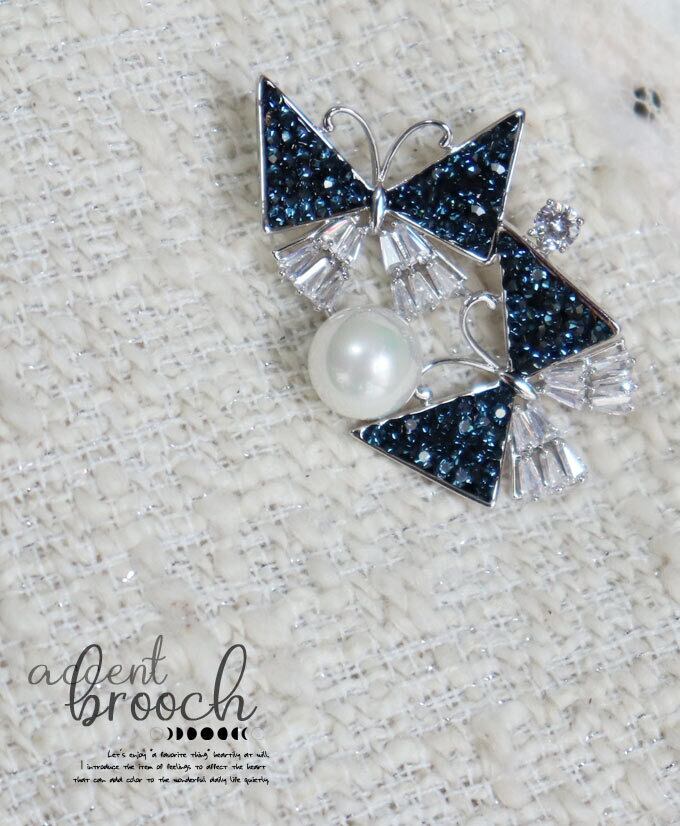 D.E.A.E かくかく蝶々ブローチ/差し色/北欧/煌めくブローチ/かわいいブローチ/銀/シルバー/バタフライ/アクセント/ビジュー/いきものブローチ/動物ブローチ/お洒落/カジュアル/パール/ネイビー/【pb737】 | deae