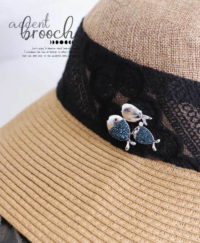 D.E.A.E おさかなブローチ/差し色/北欧/煌めくブローチ/かわいいブローチ/銀/シルバー/魚/アクセント/ビジュー/いきものブローチ/動物ブローチ/お洒落/カジュアル/熱帯魚/ネイビー/【pb739】 | deae