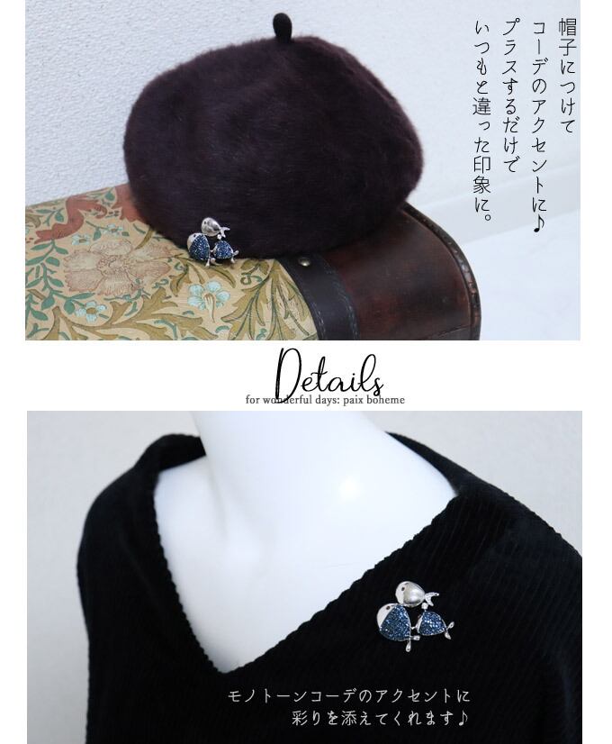 【検索ワード】おさかなブローチ/差し色/北欧/煌めくブローチ/かわいいブローチ/銀/シルバー/魚/アクセント/ビジュー/いきものブローチ/動物ブローチ/お洒落/カジュアル/熱帯魚/ネイビー/