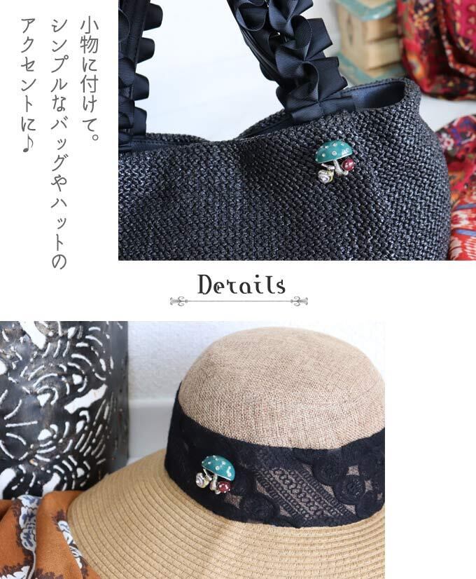 D.E.A.E きのことデンデンムシのブローチ/差し色/北欧/煌めくブローチ/かわいいブローチ/銀/シルバー/きのこ/いきものブローチ/アクセント/ビジュー/動物ブローチ/でんでんむし/昆虫ブローチ/カジュアル【pb741】 | deae