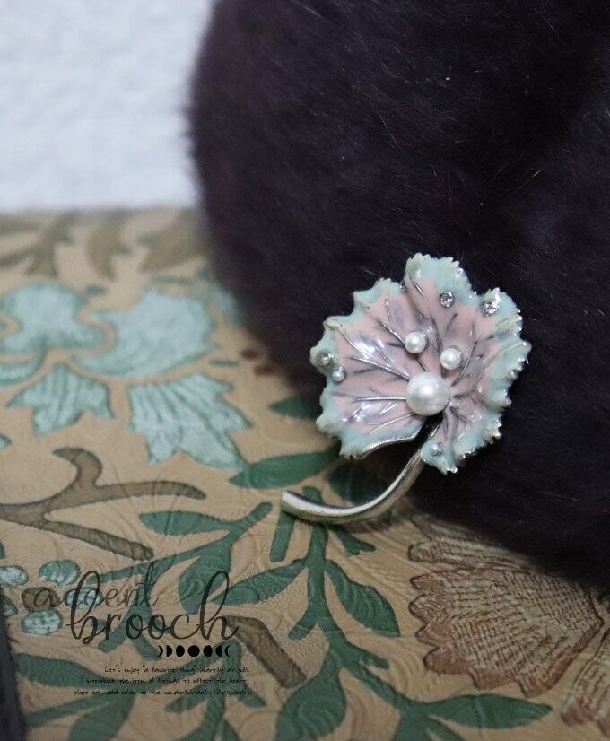 D.E.A.E パールと葉ブローチ/差し色/北欧/煌めくブローチ/かわいいブローチ/銀/シルバー/アクセント/ビジュー/自然モチーフブローチ/植物/綺麗/上品/凛とした/カジュアル/パール【pb742】 | deae