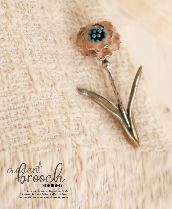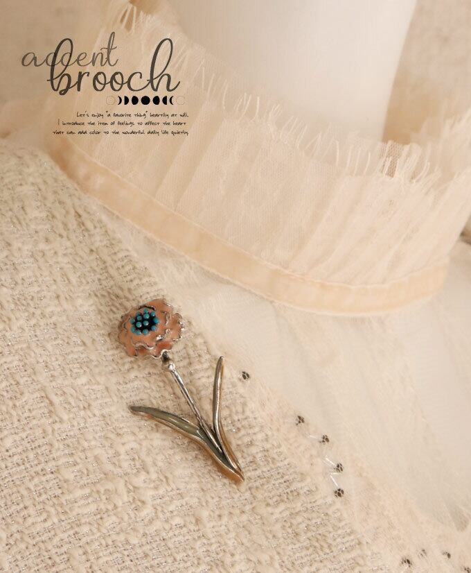 D.E.A.E 細長い花ブローチ/差し色/北欧/煌めくブローチ/かわいいブローチ/銀/シルバー/一輪の花/植物ブローチ/アクセント/ビジュー/野花ブローチ/お洒落/ワンポイント/カジュアル【pb743】 | deae