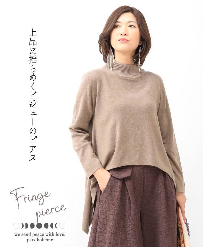 ピアス【ベージュ】DEAE オリエンタルな風合い 揺れるビーズが美しい 奇麗め 大人カジュアル【de10161】