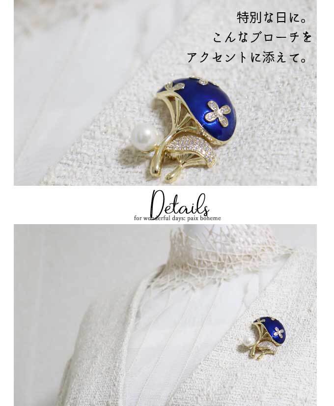 DEAE きのこブローチ/パール/差し色/北欧/煌めくブローチ/かわいいブローチ/金/ゴールド/いきものブローチ/動物ブローチ/アクセント/ビジュー/カジュアル/上品/フォーマル/可愛い/【dz10127】 | deae