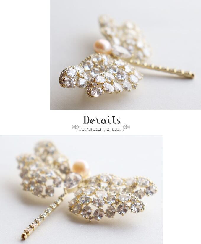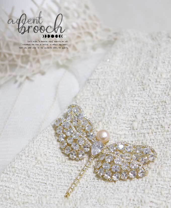 DEAE とんぼ 蜻蛉 煌めく ビジュー パール ブローチ/煌めくブローチ/かわいいブローチ/銀/シルバー/いきものブローチ/動物ブローチ/アクセント/ビジュー/カジュアル/上品/フォーマル/コサージュ【dz10132】 | deae