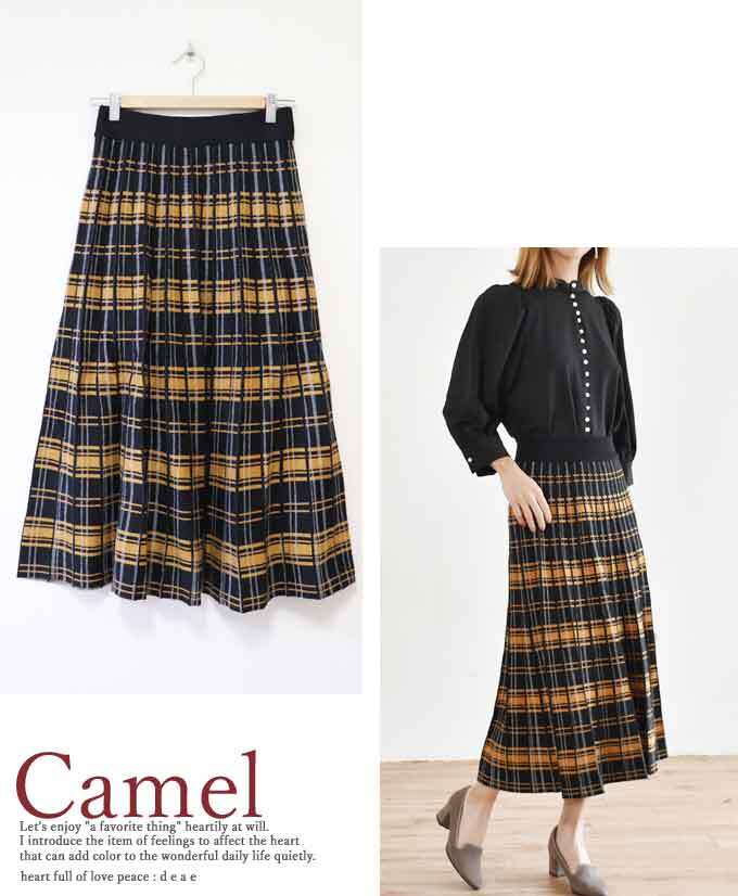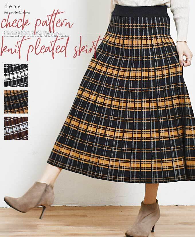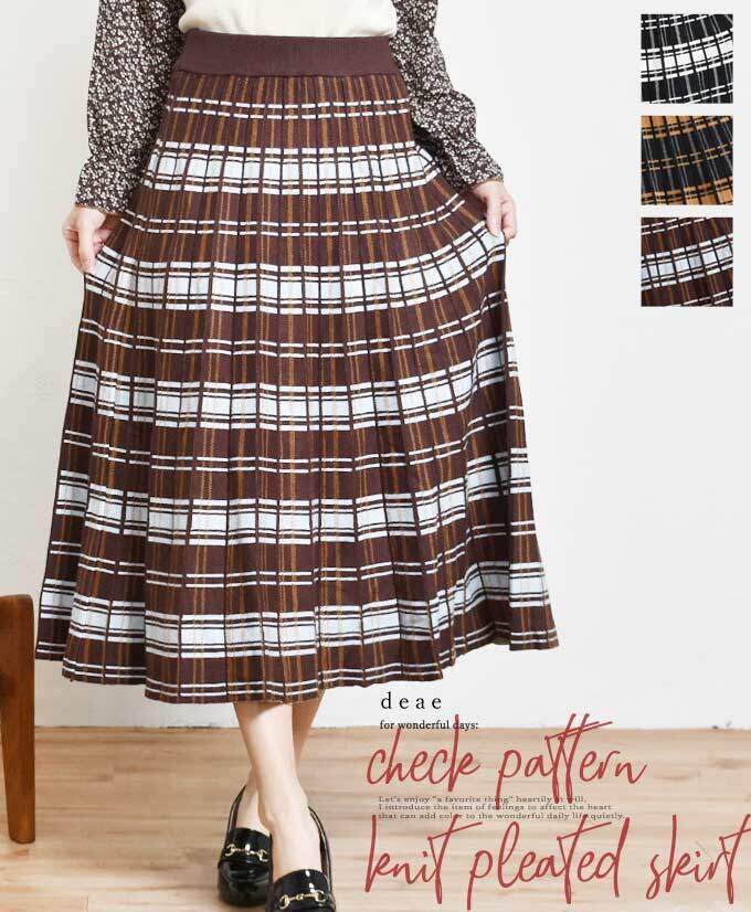 スカート ニット チェック柄 プリーツ調 上品 エレガント カジュアル Aライン フレア レディース ファッション 「上品チェック柄 着回しの効くニットのプリーツ調スカート」【dc10147】 | deae