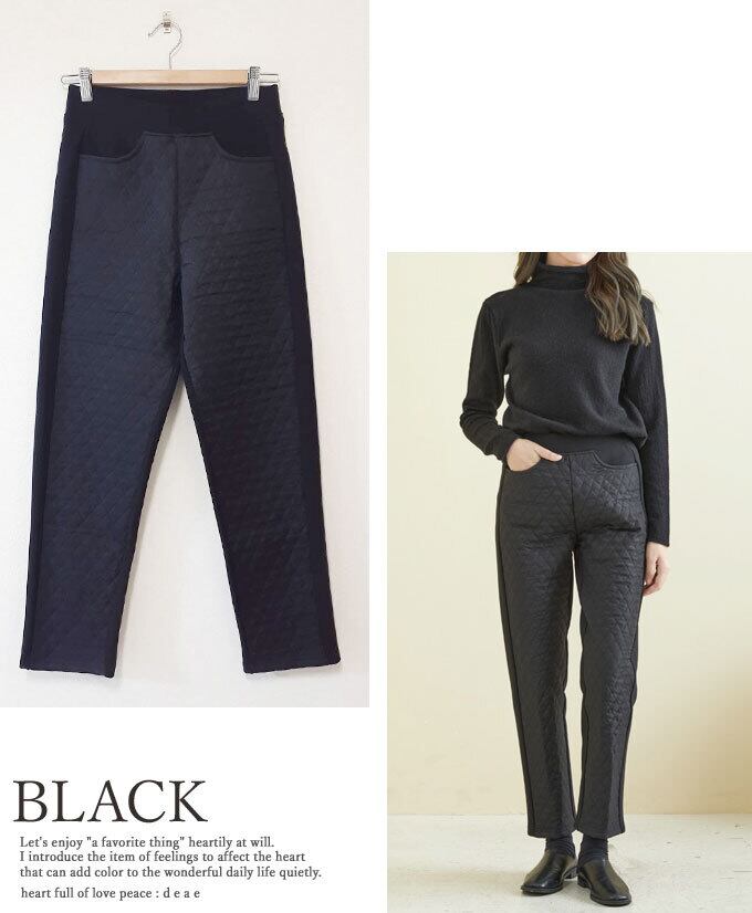 パンツ キルティング 切り替え すっきり 細見せ 上品 カジュアル モード 綺麗め レディース ファッション 「前キルティング後ろストレッチの すっきりシルエットパンツ」【dc10152】 | deae