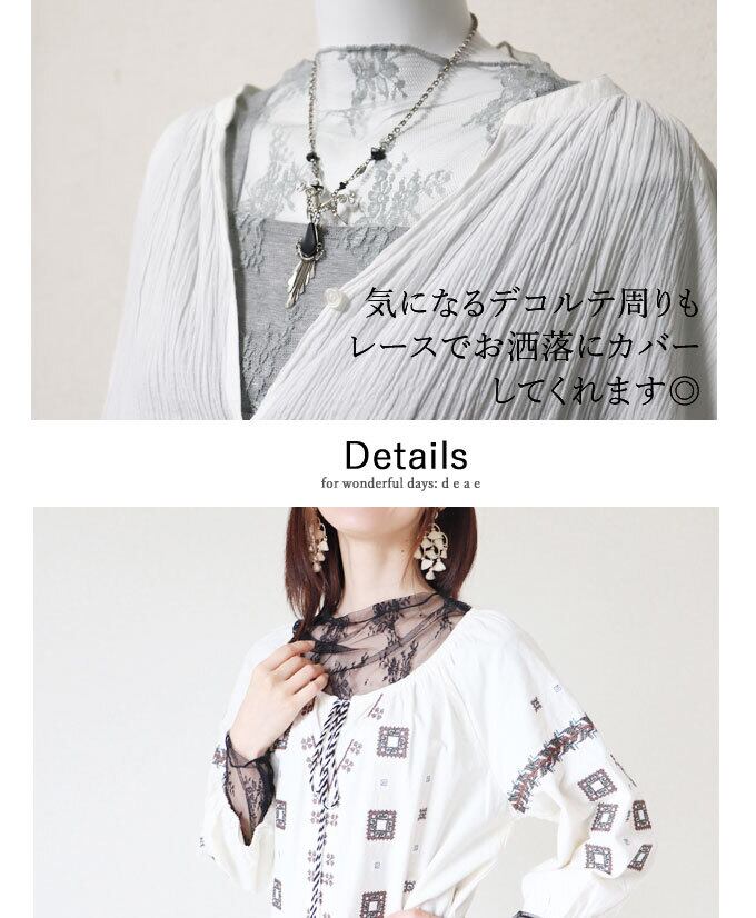 【検索ワード】トップス 長袖 レース 花刺繍 シアー 透け感 重ね着 レイヤード ブラック 黒 白 ホワイト ベージュ グレー ピンクベージュ 大人カジュアル 体系カバー スッキリ見せ 大人ナチュラル レディース ファッション シンプル きれいめ 奇麗目 上品 カットソー モード 大人カッコいい モノトーン 着回し力