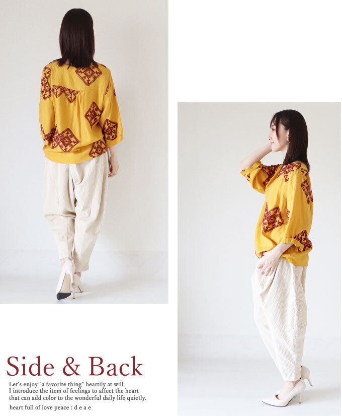 【検索ワード】草木刺繍 北欧風 七分袖 エスニック 刺繍 トップス レディース ファッション トップス カジュアル ふんわり袖 フェミニン エスニック風
