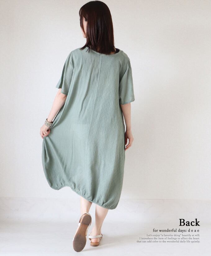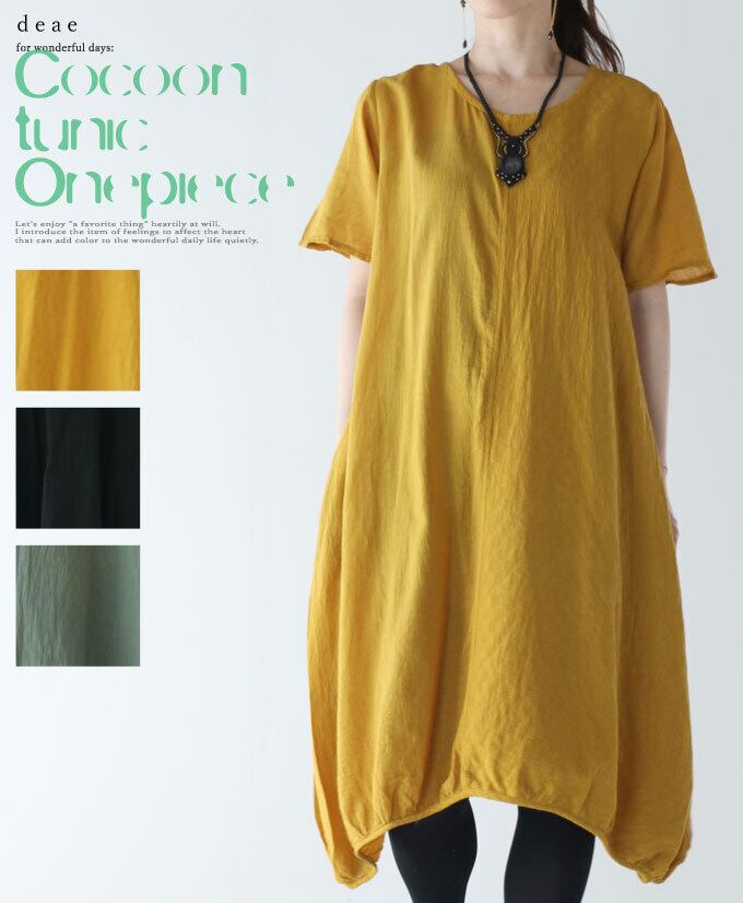 ワンピース 半袖 コクーンシルエット チュニック 綿100 レディース 夏 春 秋ファッション 大人ナチュラル カジュアル「ナチュラルな風合いの チュニックにもなる コットンコクーンワンピース」【db10121】 | deae