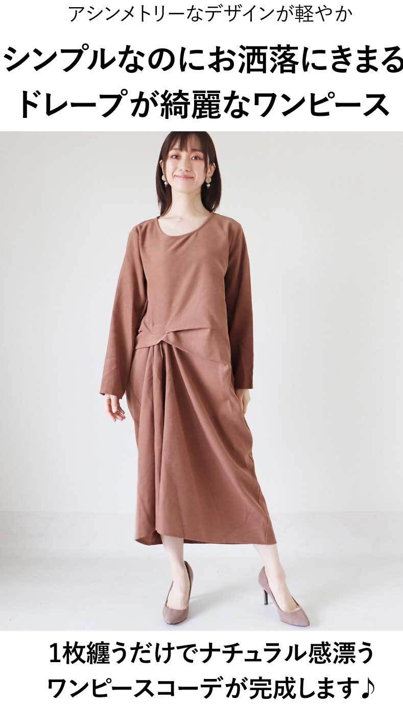【検索ワード】レディース ファッション ワンピース アシンメトリー タック ドレープ 大人ナチュラル 上品 シンプル フェミニン カジュアル お洒落 オシャレ 可愛い かわいい 大人 カジュアル きれいめ キレイめ ママ ミセス 30代 40代 50代 春 秋 春服 春物 冬 冬物 M L フリーサイズ フリー 低身長 高身長 小柄 大柄 細身 標準サイズ F M L 2L 3L XL LL30代ファッション 40代ファッション 50代ファッション 60代ファッション ミセス ブラウン