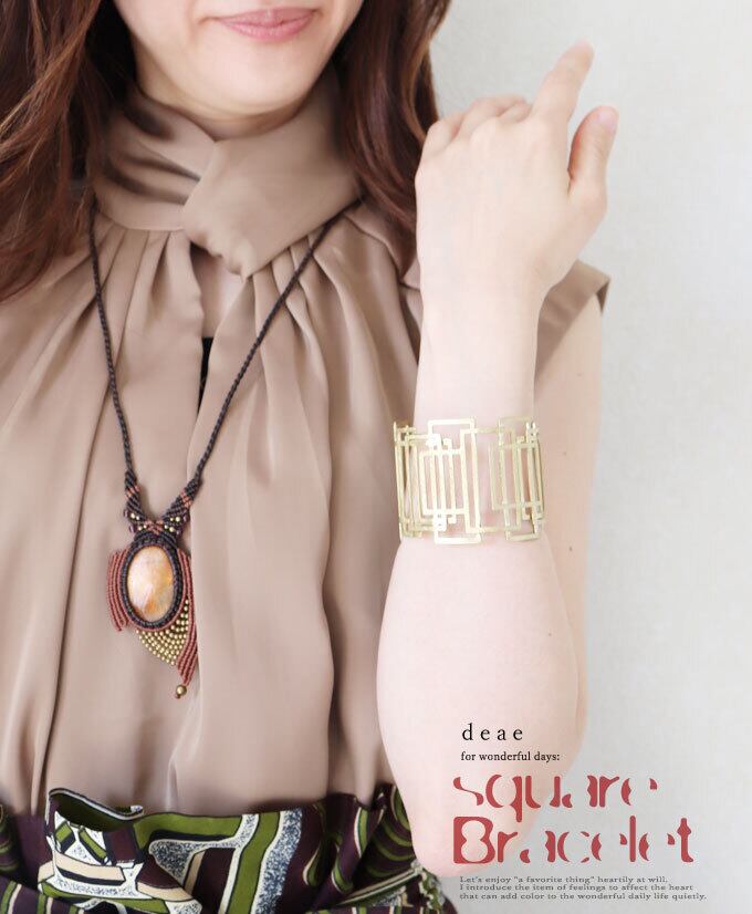 ブレスレット カービング 四角 スクエア 上品 エレガント 優雅 オリエンタル エスニック シルバー ゴールド マット加工 レディース ファッション 春 夏 秋 冬 オールシーズン カジュアル 大人ナチュラル 「手元から華やぐ 連なる四角のブレスレット」【dz10158】 | deae