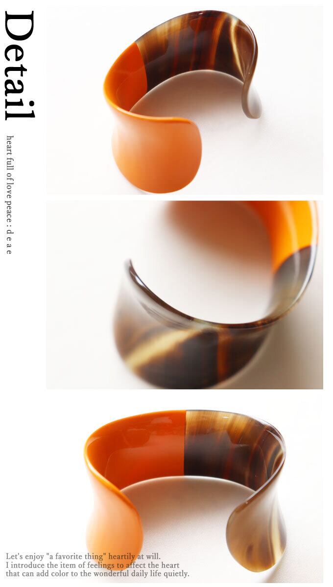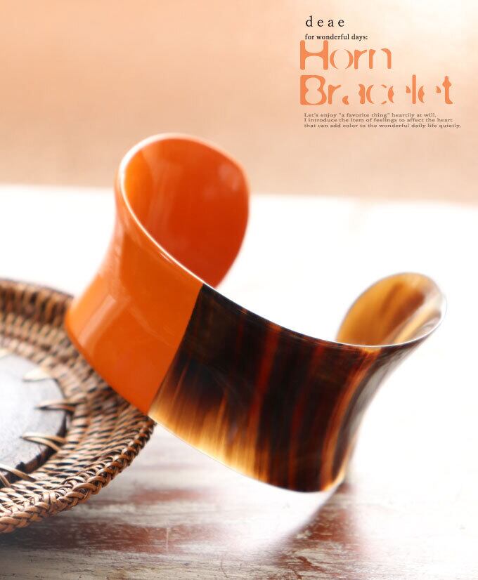 ブレスレット 水牛角 ホーン 上品 エレガント 優雅 オリエンタル エスニック 差し色 オレンジ レディース ファッション 春 夏 秋 冬 オールシーズン カジュアル 大人ナチュラル 「ナチュラルな風合い バッファローホーンの差し色ブレスレット」【dz10160】 | deae