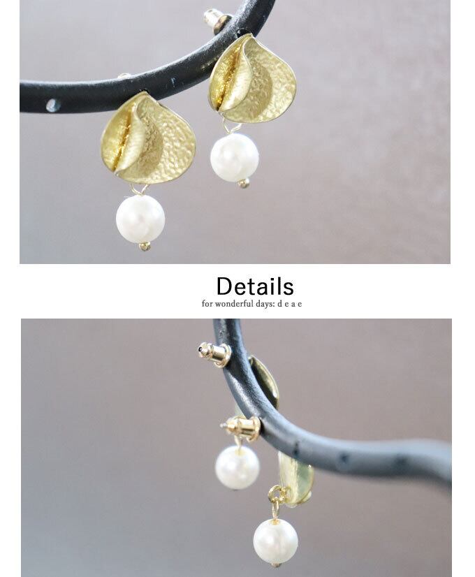 ピアス パールビジュー ゴールド 木の葉 リーフ 揺れる カジュアル 綺麗め 上品 レディース ファッション 春 夏 秋 冬 オールシーズン 「凛と上品に揺らめくパールビジューのピアス」【dz10171】 | deae