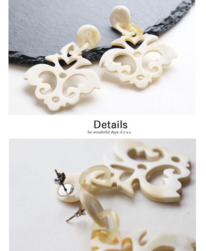 ピアス 水牛角 カービング カットワーク 蝶々 揺れる ホーン カービング カジュアル 綺麗め 上品 レディース ファッション 春 夏 秋 冬 オールシーズン 「オリエンタルなカットワークが映える アートピアス」【dz10175】 | deae
