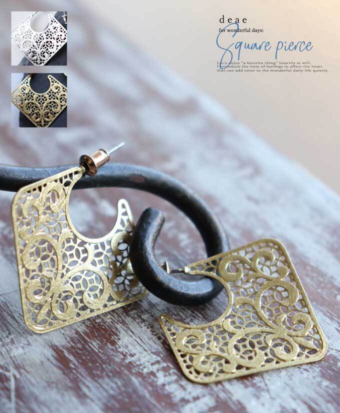 ピアス 四角 スクエア レースのようなカットワーク カービング ゴールド シルバー 繊細 透け感 透明感 アート カジュアル 綺麗め 上品 レディース ファッション 春 夏 秋 冬 オールシーズン 「レースのような繊細なカットワーク 透け感が美しいアートなピアス」【dz10177】 | deae