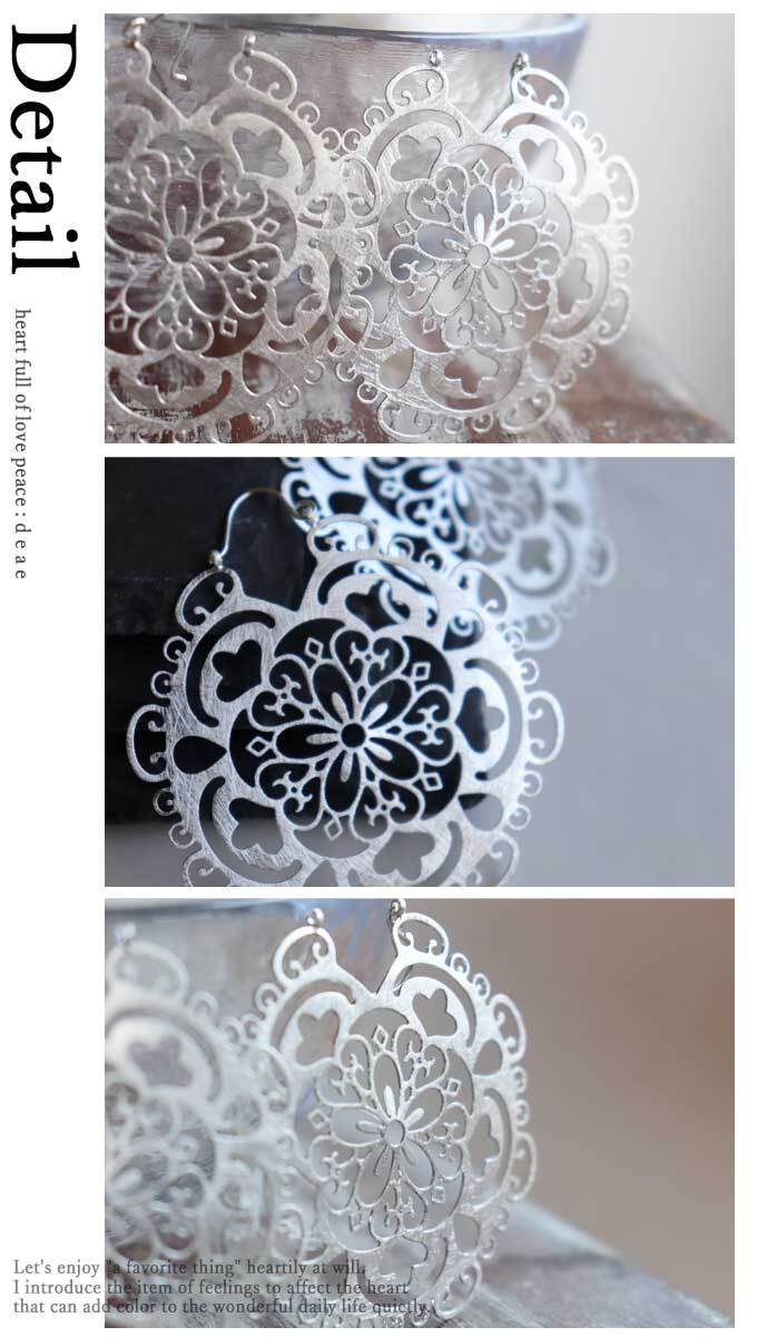 ピアス 繊細 レース カットワーク カービング ゴールド シルバー 華やか 大きめピアス カジュアル 綺麗め 上品 レディース ファッション 春 夏 秋 冬 オールシーズン 「繊細なレースみたいなカットワークが美しい アートピアス」【dz10180】 | deae