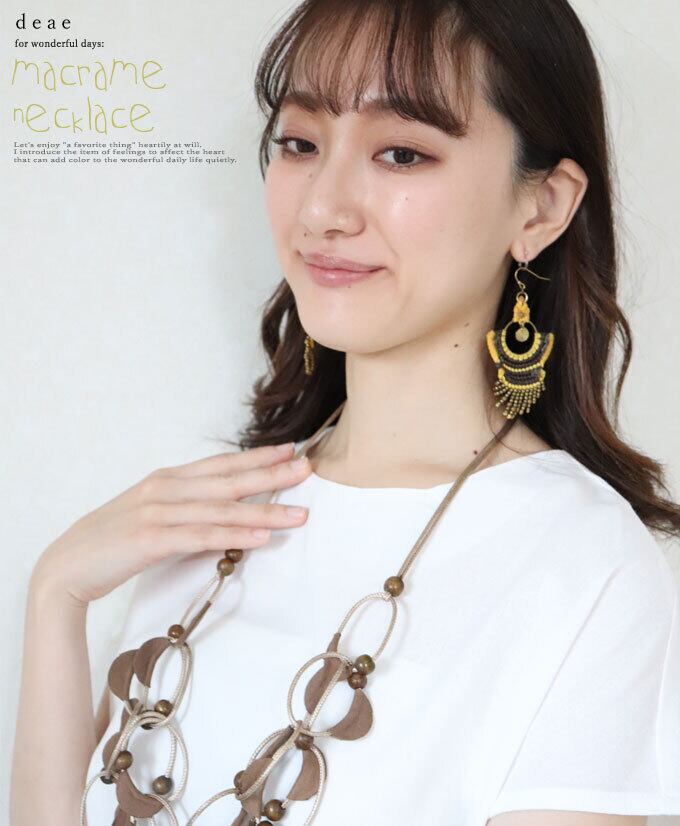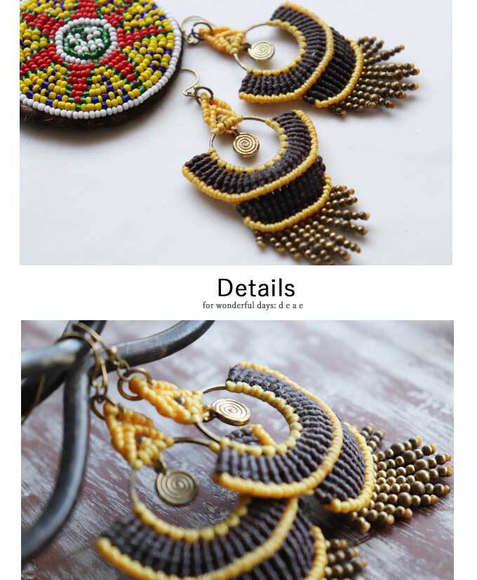 ピアス 金属アレルギー対応 マクラメ編み ハンドメイド 手作り エスニック トライバル 大人ナチュラル オリエンタル レディース ファッション 春 夏 秋 冬 オールシーズン 「耳元にアクセントカラーをプラス ハンドメイドのマクラメ編みピアス」【dz10191】 | deae