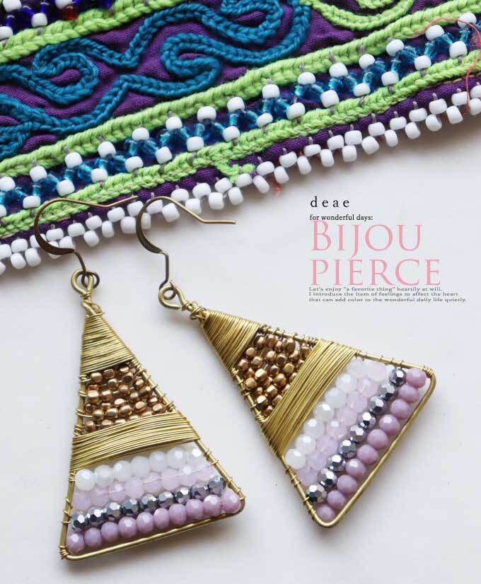 ピアス 金属アレルギー対応 三角 煌めく ビジュー ハンドメイド 手作り エスニック トライバル 大人ナチュラル オリエンタル レディース ファッション 春 夏 秋 冬 オールシーズン 「耳元に煌めくアクセント 揺れる三角のピアス」【dz10192】 | deae