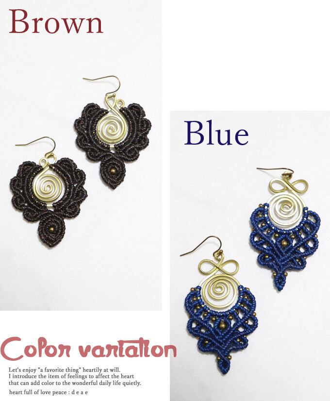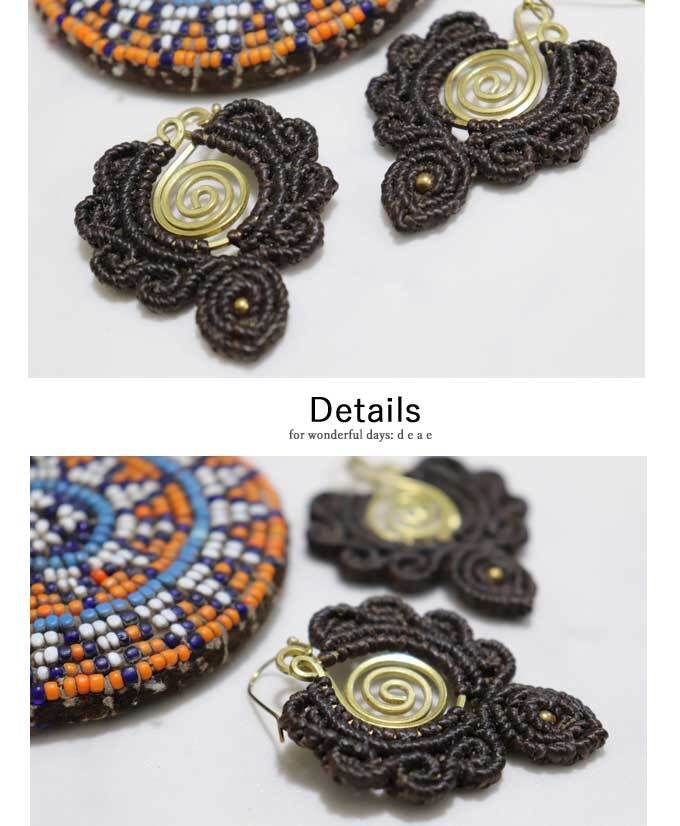 ピアス 金属アレルギー対応 マクラメ編み ハンドメイド 手作り エスニック トライバル 大人ナチュラル オリエンタル レディース ファッション 春 夏 秋 冬 オールシーズン 「オリエンタルな風合いで差し色を楽しむ ハンドメイドのマクラメ編みピアス」【dz10195】 | deae