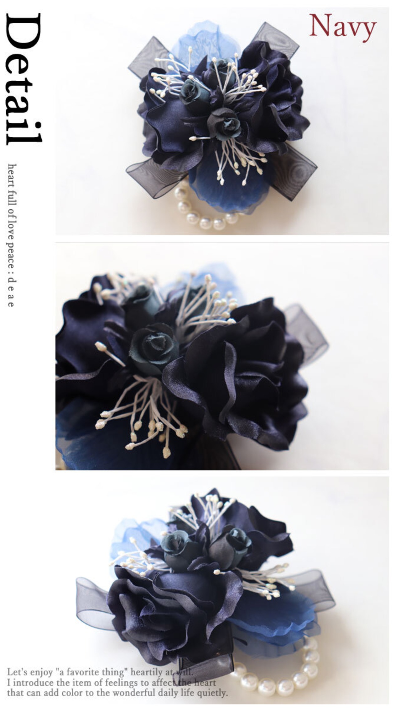 【検索ワード】 コサージュ/ブローチ/上品/フォーマル/コサージュ/卒業式/入学式/卒園式/入園式/発表会/結婚式/ワイン/ネイビー/