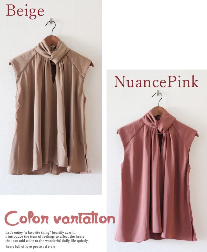 トップス ミドル丈 ノースリーブ ツィストネック レディース ファッション 春 夏 秋 綺麗め カジュアル 上品 華やか 艶やか オフネック 着回し力 シンプル 「程よく光を映して艶めく ツィストネックのトップス」【da10193】 | deae