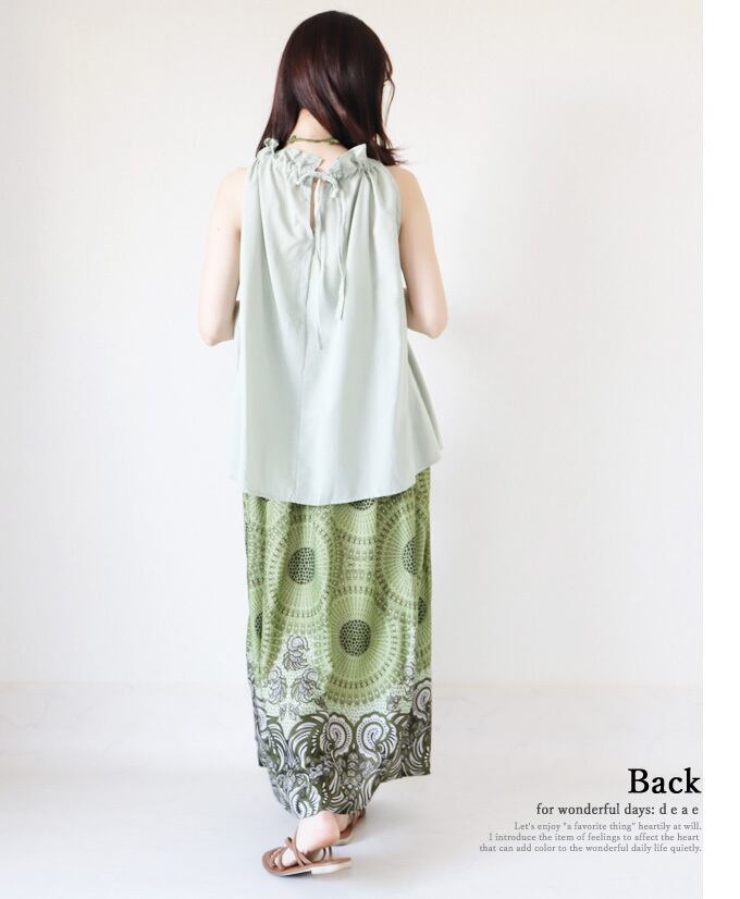 トップス ノースリーブ フレア 後ろリボン 無地 着回し レディース ファッション 春 夏 秋 カジュアル ゆったり 大人ナチュラル 「纏うだけで大人ナチュラルが完成 着回し力を実感 ふんわりコットンのフレアトップス」【da10204】 | deae