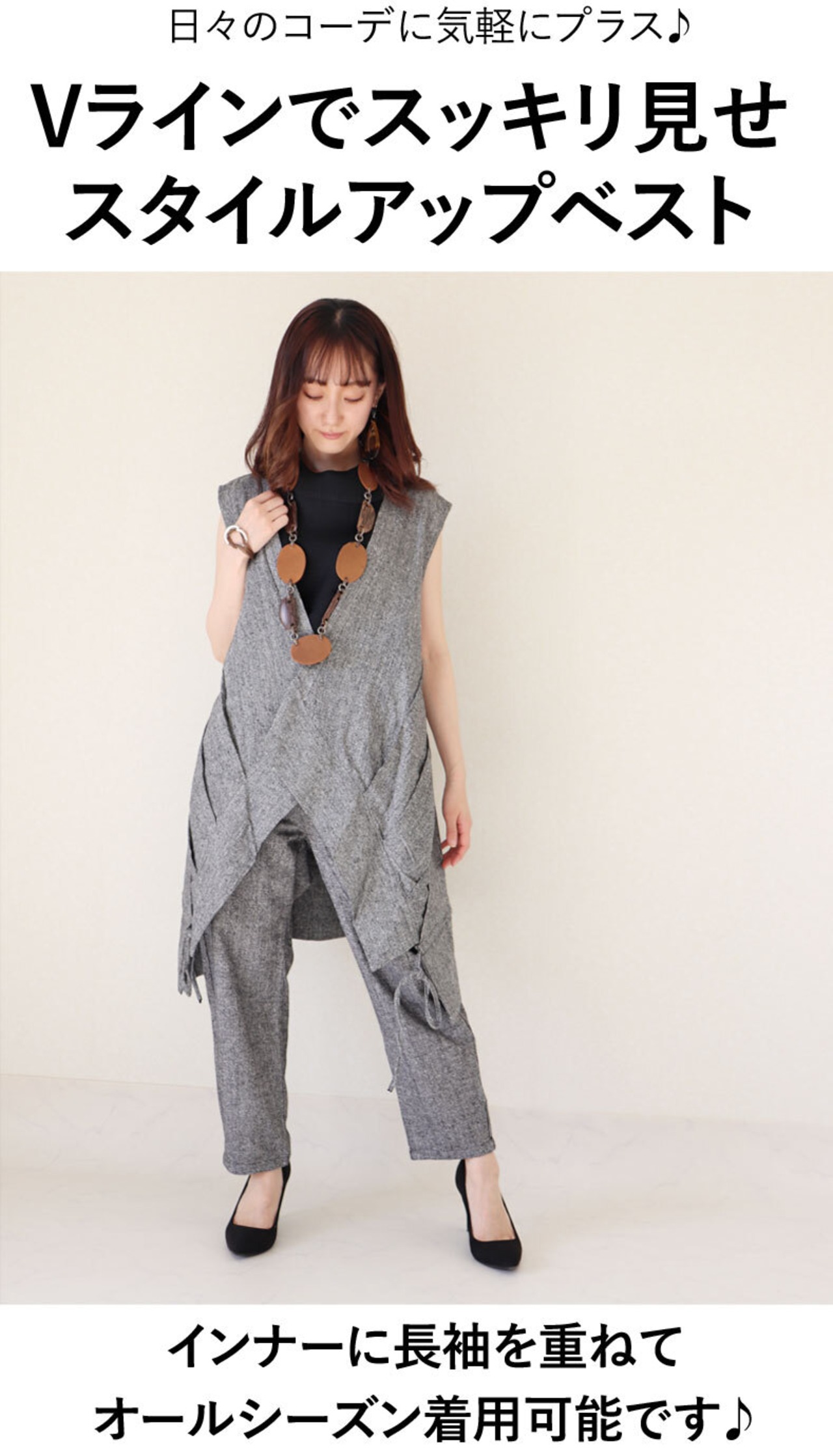【検索ワード】トップス ベスト Vネック モード ドローストリング カジュアル モノトーン レディース ファッション 30代ファッション 40代ファッション 50代ファッション 60代ファッション 綺麗め きれいめ 上品 おしゃれ ミセス グレー チャコール