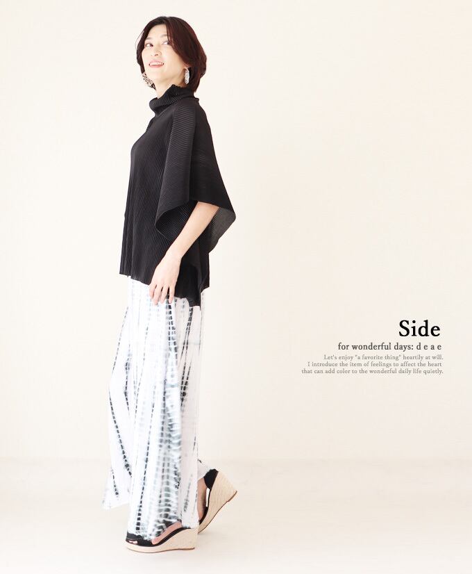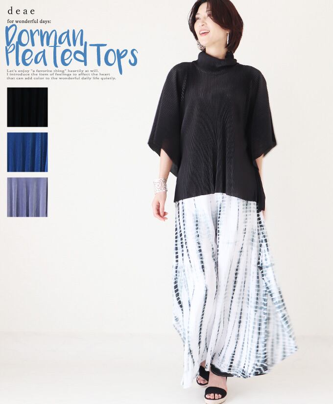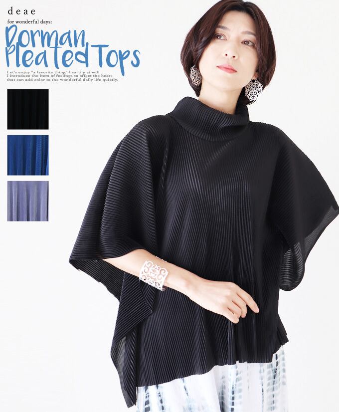 トップス ドルマン プリーツ ストレッチ 五分袖 ゆったり レディース ファッション 春 夏 秋 冬 カジュアル 綺麗め 上品 モード 「ストレッチ抜群 細かなプリーツがお洒落なドルマンスリーブトップス」【da10210】 | deae