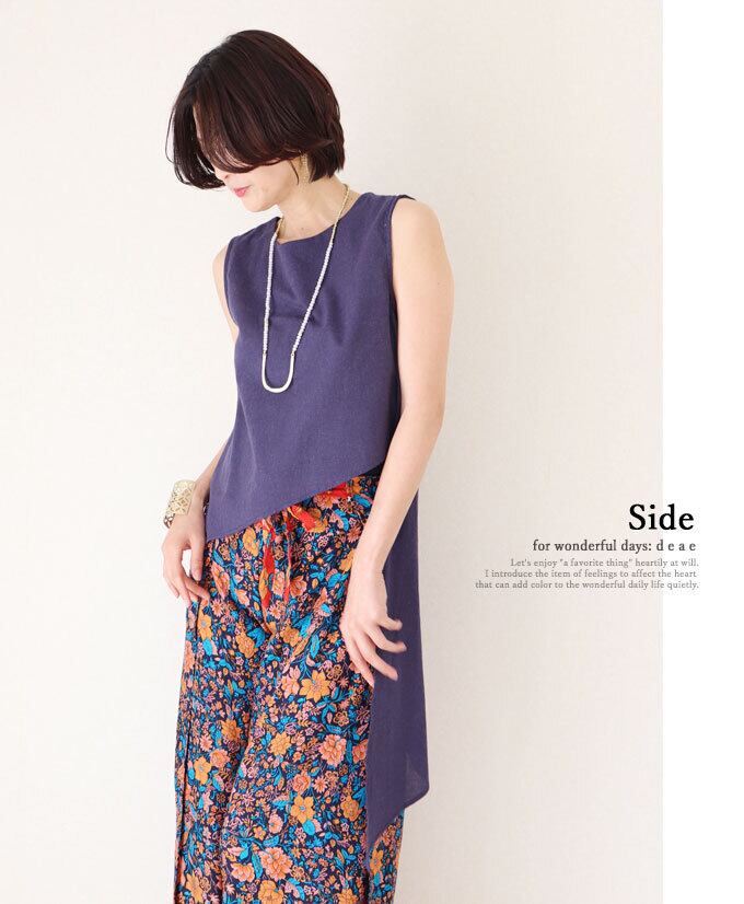 トップス ノースリーブ アシンメトリー レディース ファッション 春 夏 秋 大人ナチュラル シンプル スタイルアップ 着回し力「アシンメトリーなシルエットでスタイルアップ ヒップまですっぽり隠れる スッキリ見せ叶えるトップス」【da10221】 | deae