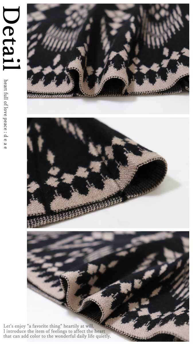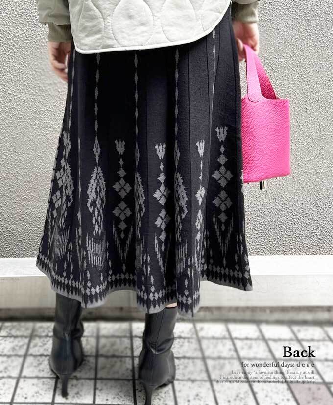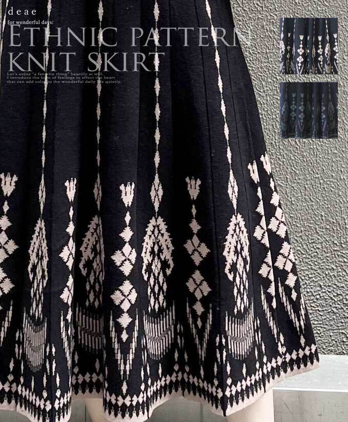 スカート ニット エスニック柄 プリーツ調 上品 エレガント カジュアル Aライン フレア レディース ファッション 「優雅なエスニック柄 ほっこり暖かいニットのプリーツ調スカート」【dc10145】
