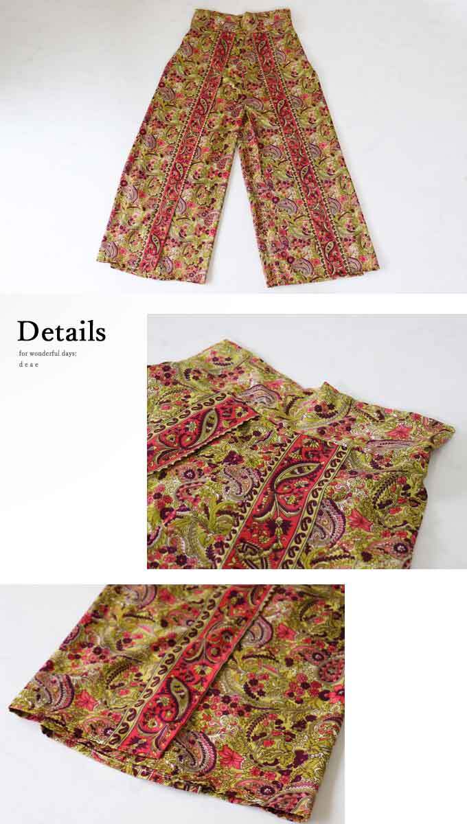 パンツ オリエンタル エスニック 花柄 タイパンツ フレアパンツ ワイドパンツ レディース ファッション 大人ナチュラル カジュアル 「上品な艶感 品よく華やぐオリエンタルな風合いのフレアパンツ」【dc10175】 | deae