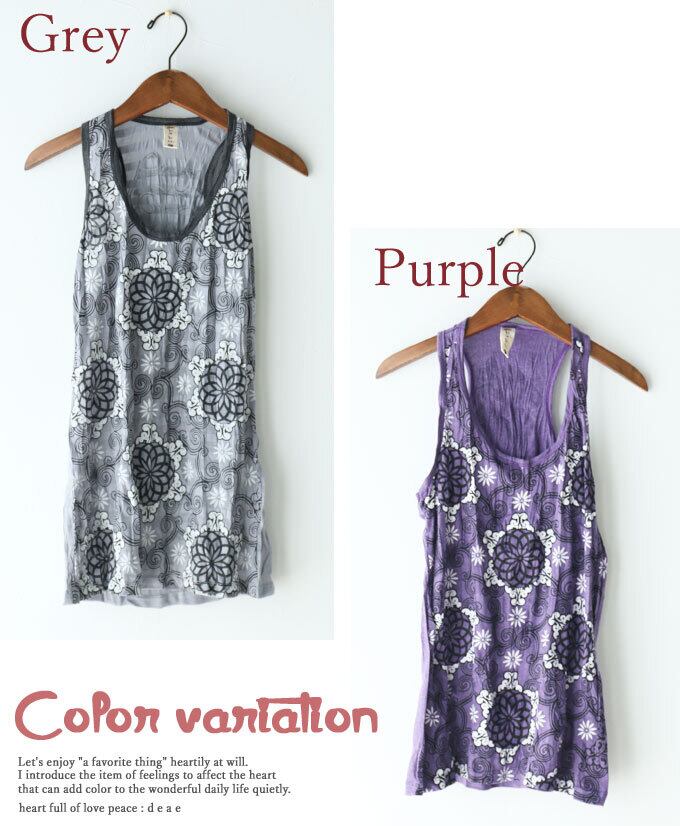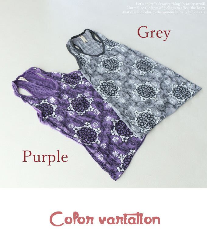 【検索ワード】トップス タンクトップ ノースリーブ オリエンタル エスニック アジアン レディース ファッション 大人カジュアル 「重ね着インナーにも使える オリエンタルな雰囲気を楽しむトップス」グレー パープル 30代 40代 50代 60代 ファッション