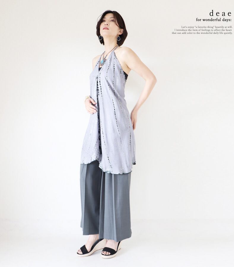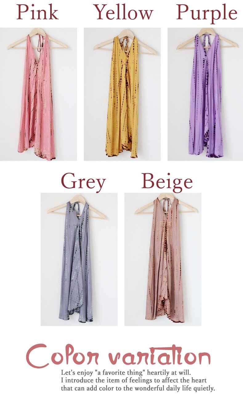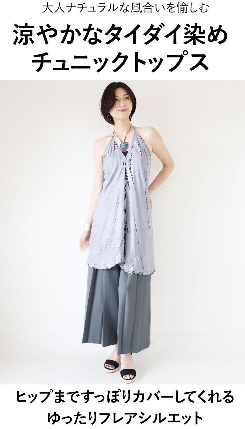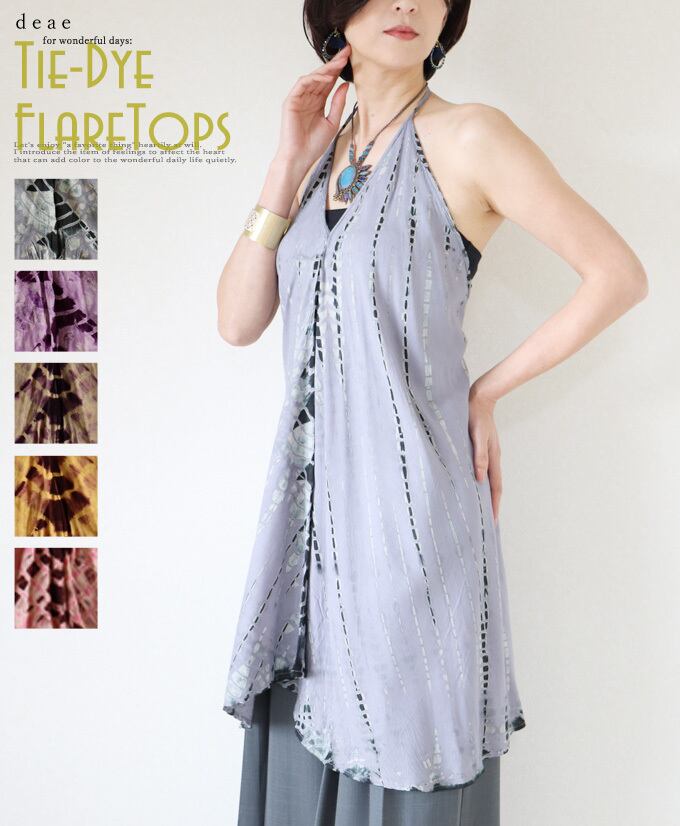 トップス ノースリーブ チュニック ワンピース ホルターネック タイダイ染め レディース ファッション 大人カジュアル エスニック アジアン 大人ナチュラル「上品にエスニックを楽しむ 凛と華やぐタイダイ染めチュニックワンピース」【da10227】 | deae