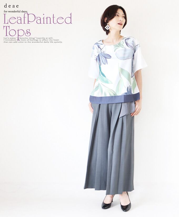 【検索ワード】トップス 半袖 上品 綺麗め 草木柄 花柄 レディース ファッション 大人カジュアル「凛と涼やかな草木柄の 上品な風合いの半袖トップス」ホワイト 30代 40代 50代 60代 ファッション